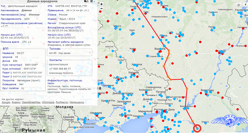 Аэродром назначения: “Дивное” N45°55.442' E043°23.779'