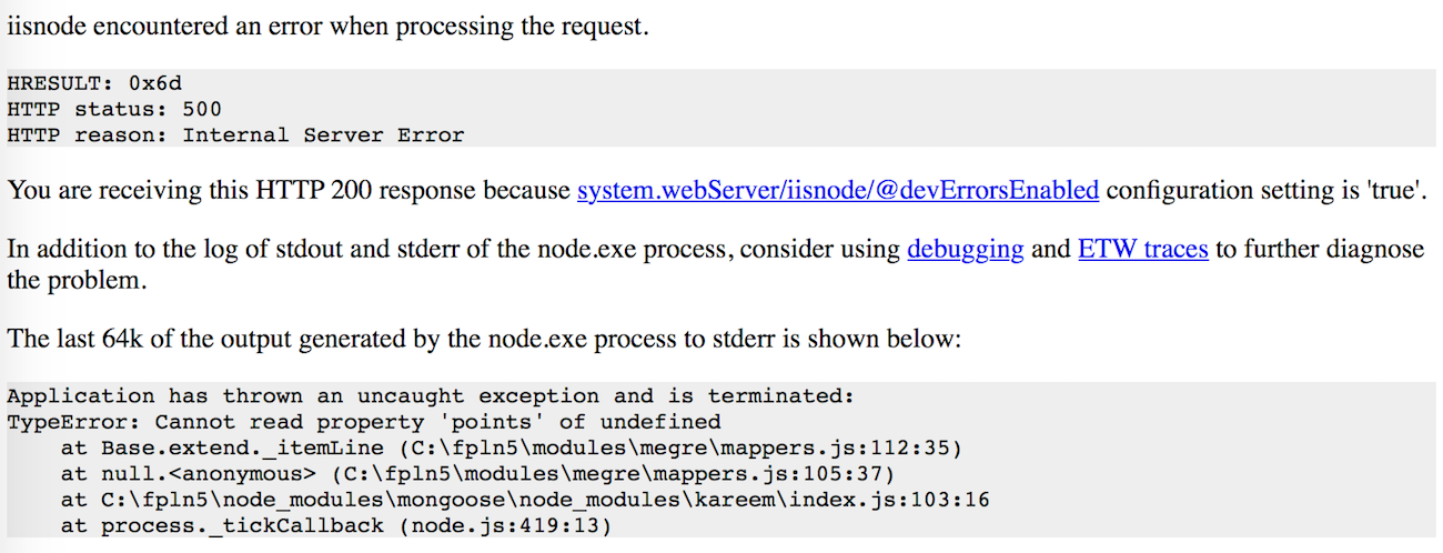 iisnode encountered an error when processing the request.