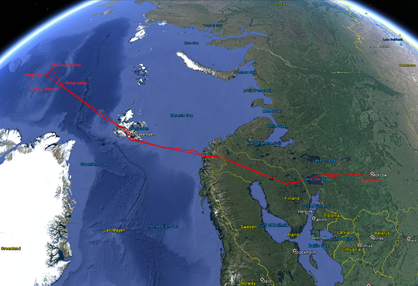 Маргарита мне сразу сказала, что нам будет очень трудно получить разрешение от норвежских властей на пролет через Шпицберген. Действительно, за пару лет до этого наш знакомый англичанин Sam, занимающийся организацией авиатуров по всему миру, получал разрешение на маленький самолетик и двух пилотов в течение ДЕВЯТИ месяцев. За контакты со Шпицбергеном у нас взялись отвечать Володя и Женя. Завязалась долгая изнурительная переписка со ссылками на AIP'ы и прочие закорючки. Норвежская CAA посылала нас к Губернатору Шпицбергена, Губернатор вяло отвечал, что раз мы не везем пассажиров - нам надо в CAA. В общем, разрешение CAA мы получили к изумлению Маргариты - она в то же время узнала, что такого разрешения не смогли добиться пилоты двух маленьких американских самолетов (они обращались за размещением на Барнео и были посланы сначала к норвегам - откуда так и не вернулись). Кстати, власти Шпицбергена очень трепетно относятся к своему воздушному пространству и ежегодно фиксируют по несколько десятков несанкционированных посадок вне аэродрома. Главным условием для нас было пройти с юга через привод на аэродром и потом кратчайшим путем на Барнео, обратно - в той же последовательности. Никаких прогулок над архипелагом и, тем более, - никаких посадок!!! Объясняют это экологией, но я подозреваю - скорее защищают "местного производителя" от конкуренции... Естественно, мы заведомо были согласны с этими ограничениями.
