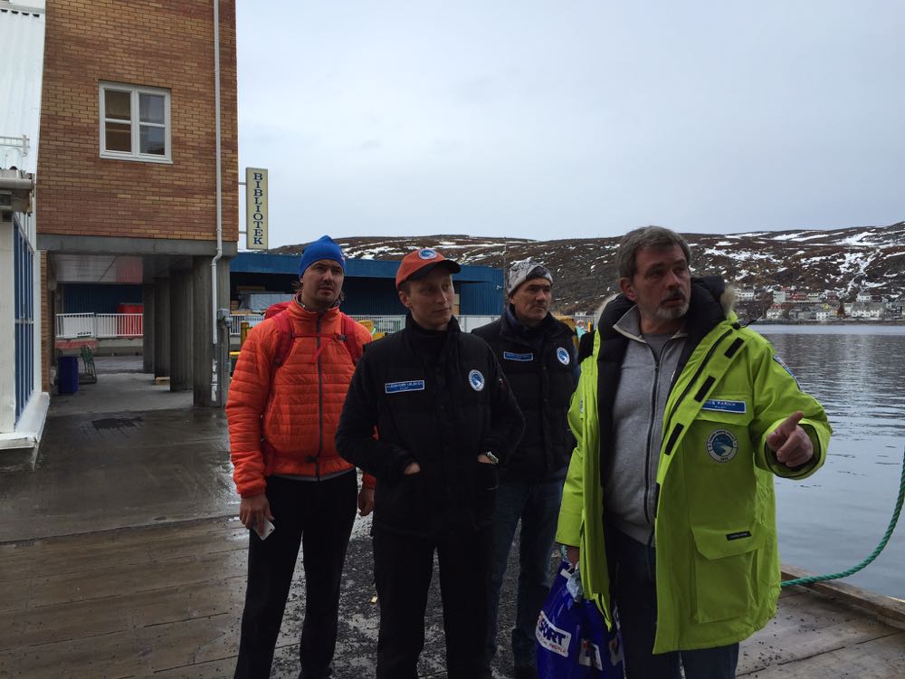 Мы заправились и озадачились принятием решения: лететь/не лететь сегодня на Шпицберген? Решение давалось нам трудно: с одной стороны, за сегодня мы пролетели не более трех часов - так, легкая прогулка; с другой - местные пилоты спасательных вертолетов начали рассказывать нам ужасы о переохлажденном тумане на маршруте и неизбежном мгновенном обледенении над холодным морем... С третьей - нам почему-то захотелось остаться на ночь, перевести дух после вчерашнего довольно напряженного дня и поесть знаменитых норвежских крабов... С четвертой стороны, мы понимали, что три полетных часа в день - это как-то совсем не геройски и не по-нашему, не по-полярному... а мировая общественность-то следит за треками... типа, билеты на матч распроданы, нельзя разочаровывать болельщиков... Опять же, оставшись в Хаммерфесте, мы на сутки отставали от графика, что было критично для Саши Лелекова по работе... А переохлажденный туман куда девать?.. Кирилл предложил компромиссный вариант: быстро смотаться в город, поесть крабов - а потом "со свежими силами" двинуть на круглосуточно освещаемый Солнцем Шпицберген. В общем, решение принималось трудно - похоже, мы извели весь запас кофе в комнате отдыха пилотов...