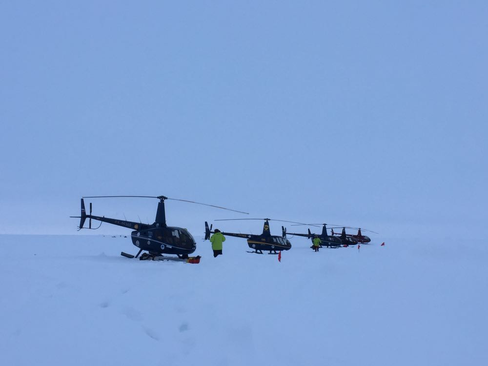 С вечера мы под пробки заправили наши вертолеты, чтобы с утра вылететь еще на два полюса: Магнитный и Недоступности. Накануне мы решили, что не будем заранее развозить топливо по маршруту: если на обратном пути мы поймем, что топлива не хватает, то сольем керосин из трех бортов в два и отправим эти два борта на Барнео. Емкостей на бортах достаточно, чтобы привезти недостающий керосин на всех. Остальные тем временем встанут лагерем и будут готовить обед.
