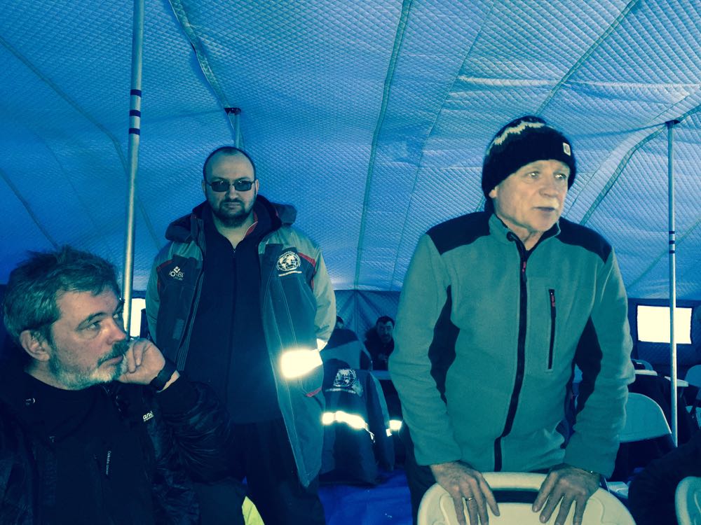 И вот, когда все уже напились кофе, объелись шашлыками, и ситуацию можно было описать простой фразой "на земле мир,и в человецех благоволение", Женя решил снять ролик для Гиннесса. Мы быстро обсудили, как сделать ролик доказательным: экран Гармина с координатами в кадре, параллельная съемка с камеры от Гармина (с координатами прямо на картинке), комментарии на хорошем английском языке... И, осознавая всю важность работы, приступили... За бортом в этот день в этом месте было минус 28С... Женя управлял шайтан-машиной, Володя снимал его с качеством 4К и, как ведущий, задавал вопросы, Женя комментировал свои действия типа: вот мы подключаем машину к бортсети, вот заливаем воду, вот таблетка с кофе... вот включили машину... вот указатель температуры воды и давления пара... вот сигнал о готовности нежнейшего эспрессо... вот чашечка, куда мы сейчас нальем кофе и насладимся ароматом и вкусом (и все это на морозе минут на 5-7 на прекрасном английском)... И в момент кульминации кнопка подачи напитка не пожелала нажиматься... Что-то в недрах машины безнадежно замерзло на хрен. Сначала Женя пытался сохранить общий оптимистический тон англоязычных комментариев, нажимая кнопку сначала разными пальцами в перчатках, потом - без перчаток... Потом мы перешли на русский, и Женя начал постукивать этой кнопкой о выступающие детали фюзеляжа - хрен там