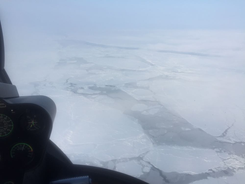 На наш вопрос Борис ответил, что готов лететь в составе одночленного экипажа - и мы полетели. Погода в этот день была исключительно хороша, ярко светило полярное солнце.