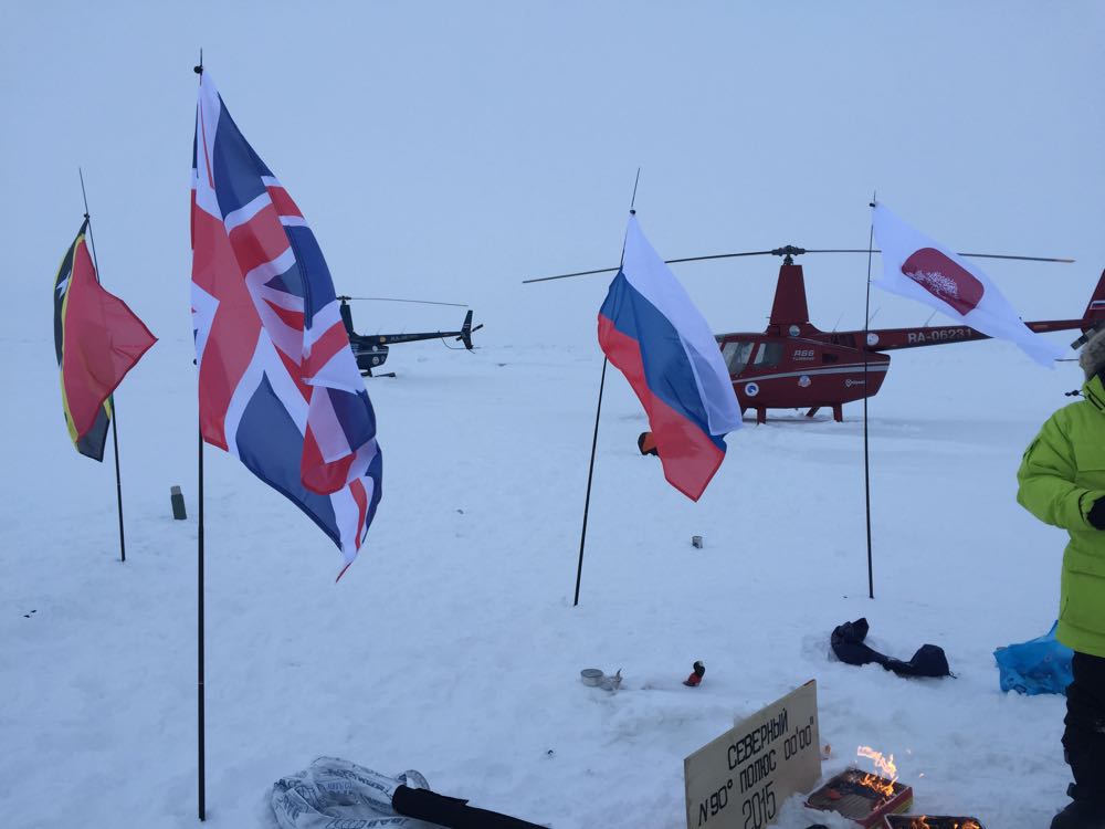 Итак, 10 апреля 2015 года впервые в Истории 5 вертолетов Robinson R66 совершили посадку на Географическом Северном полюсе Земли. В предыдущем посте я по невнимательности разместил фото с восемью пилотами (без двух фотографов), здесь выкладываю правильную