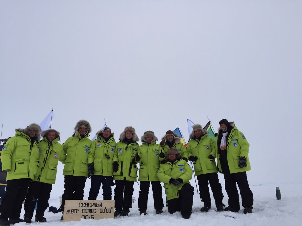 Итак, 10 апреля 2015 года впервые в Истории 5 вертолетов Robinson R66 совершили посадку на Географическом Северном полюсе Земли. В предыдущем посте я по невнимательности разместил фото с восемью пилотами (без двух фотографов), здесь выкладываю правильную
