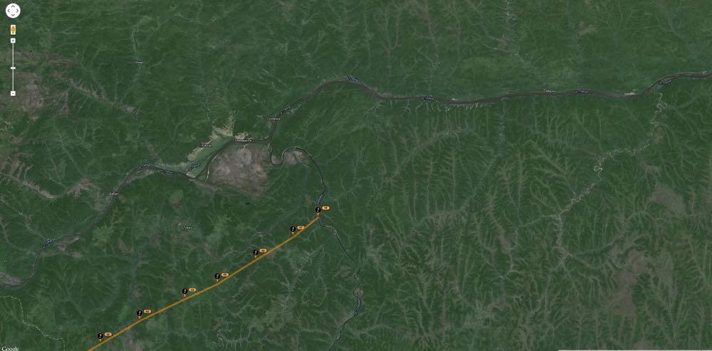 Misha писал(а):Что-то Серега на ночь на берегу Олекмы встал, на траверзе Олекминска.