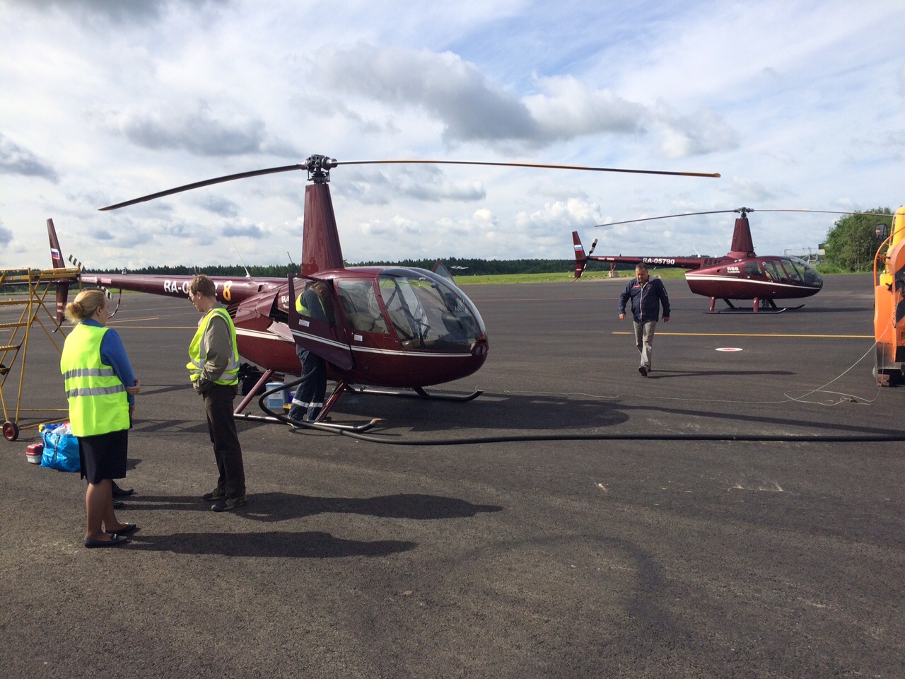 Началось все с заявления единственного, повторяю по буквам ЕДИНСТВЕННОГО диспетчера на все случаи жизни. Потому, что люди считают деньги. Он дал ветер и предложил нам самим выбрать курс захода! Он же и отправил нас к встречающему на перроне. Он же разрешил запуск и взлет в международном аэропорте. Заправка двух вертолетов заняла полчаса. Было бы быстрей, но нам нужен был бензин и керосин. Единственный заправщик, сначала пригнал керосин, затем бензин и быстро нас заправил. Больше всего времени заняла оплата, единственный кассир аэропорта, продает билеты и принимает карточки и нал за все услуги для ВС. Здесь ушло еще тридцать минут на ожидание с чашечкой кофе в руках выписывания всяких накладн. Но впечатления все равно не испортило. Если карты начнут принимать на перроне, то этот порт станет побратимом Копио и всех остальных НОРМАЛЬНЫХ аэропортов планеты! Сказал руководству аэропорта про то, что если они сделают низковысотными выходы из России восточней Питера, то в центр финляндии будет удобней летать через них. Тут же была поставлена задача штурману аэропорта проработать этот вопрос.