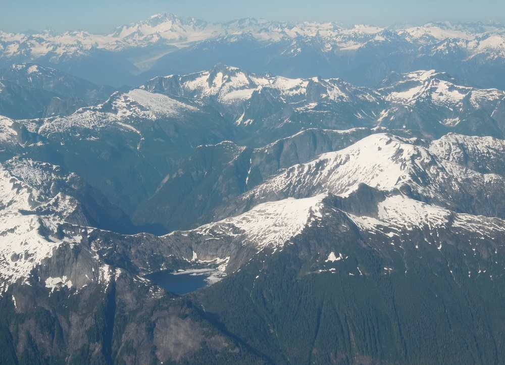 Ну в начале пути, в районе Сиэтла и Ванкувера, наоборот, места очень обжитые и красивые. К сожалению снимки с высоты, сквозь дымку и стекло, не передают всей прелести картинки. Зелень лесов, синева моря, белые яхты и катера - казалось, что вся Америка отправилась отдыхать на воду. Хотя, судя по плотам из сплавляемого кругляка - некоторые работали