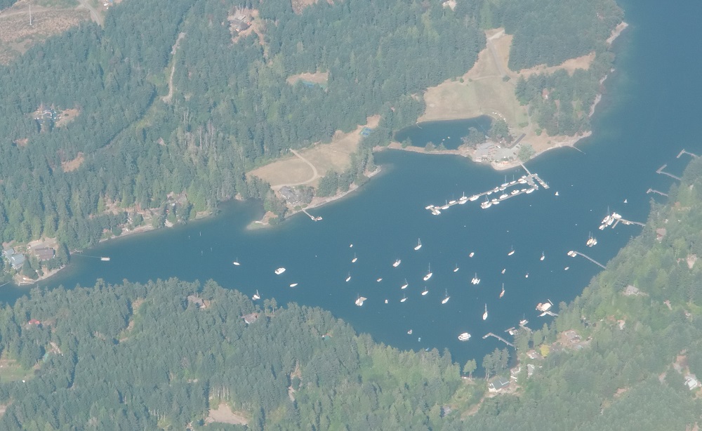 Ну в начале пути, в районе Сиэтла и Ванкувера, наоборот, места очень обжитые и красивые. К сожалению снимки с высоты, сквозь дымку и стекло, не передают всей прелести картинки. Зелень лесов, синева моря, белые яхты и катера - казалось, что вся Америка отправилась отдыхать на воду. Хотя, судя по плотам из сплавляемого кругляка - некоторые работали