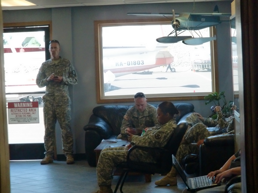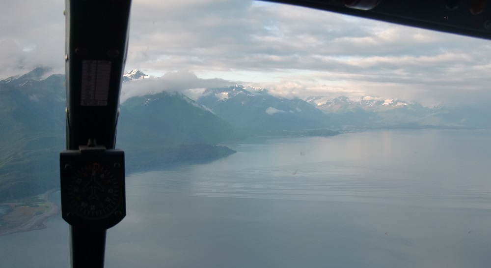 Мы намеревались в этот день проскочить до Анкориджа с одной промежуточной посадкой. Но погода по маршруту не особенно располагала к визуальным полетам. Пришлось несколько часов промаяться в FBO. За это время там перетусовалось куча народа, включая команду военных. Несколько часов промаявшись у компа и дождавшись более-менее нормальной погоды, мы наконец рванули в Якутат.