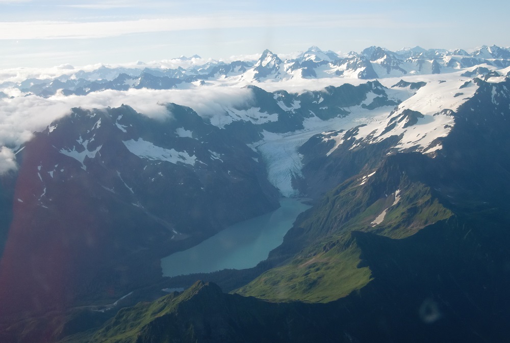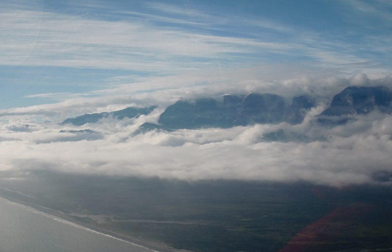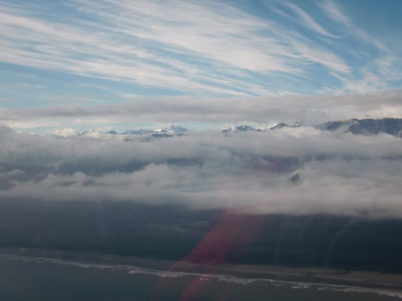 Здесь самое время было бы ввернуть Серёгину цитату про "лунные" или "марсианские" пейзажи и прочий Мордор, увиденный нами по пути. Что касается "картинки" в полёте, то это была самая зрелищная часть нашего путешествия. К сожалению камера у меня - обыкновенная мыльница, съёмка сквозь блики на стекле не добавляет качества, а сжатие до приемлемых размеров для выкладки на сайте убивает ауру окончательно. Но кое-что выложу, дальше пусть работает фантазияBuddu писал(а):Дальше будет несколько мало кому интересных фотографий, которые должны были проиллюстрировать нашу дорогу в Анкоридж, но в Анкоридж в тот кон мы не попали. Погода внесла свои коррективы: прижимало, прижимало к воде, в финале крутили на 180 градусов в обратную сторону между гор, но у лайнера со здоровьем все в порядке, поэтому в середине витка высота была уже гораздо выше всей местной гористости. Кто наблюдал за СПОТом - видел эту эпопею, а вернулись мы чуть назад и заночевали в известном авиационном месте: Валдез.