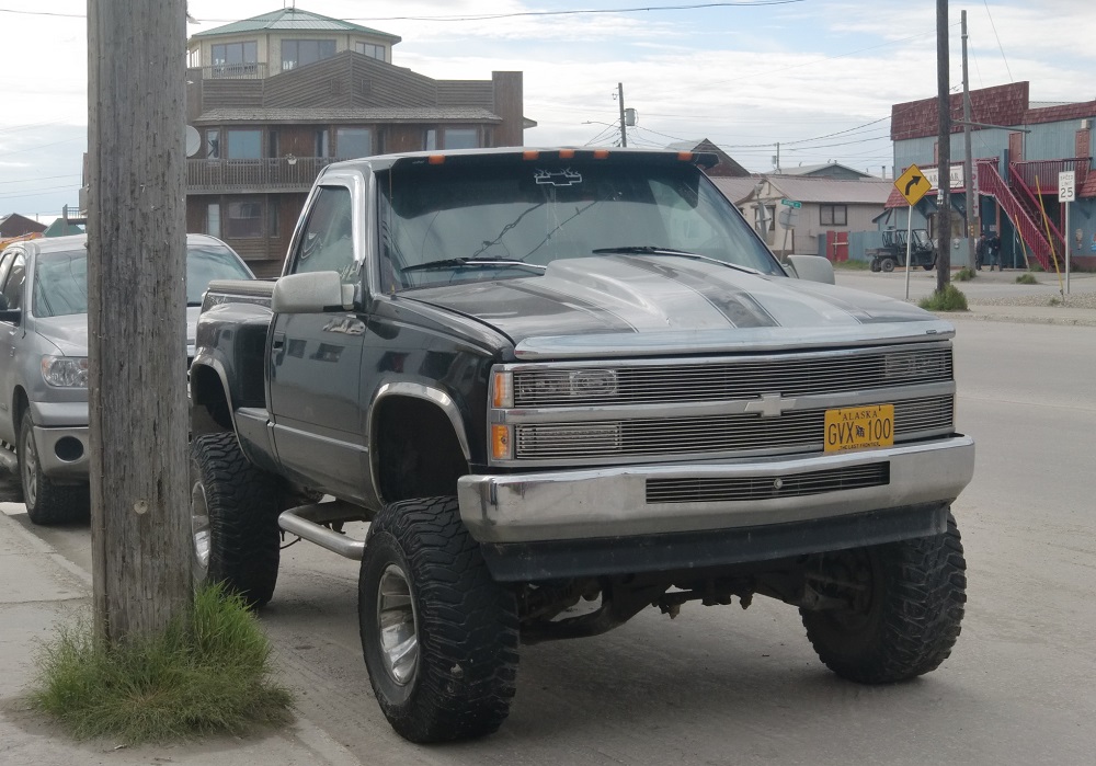 Раритетный пикап "Шевроле" рядом со снежиком.