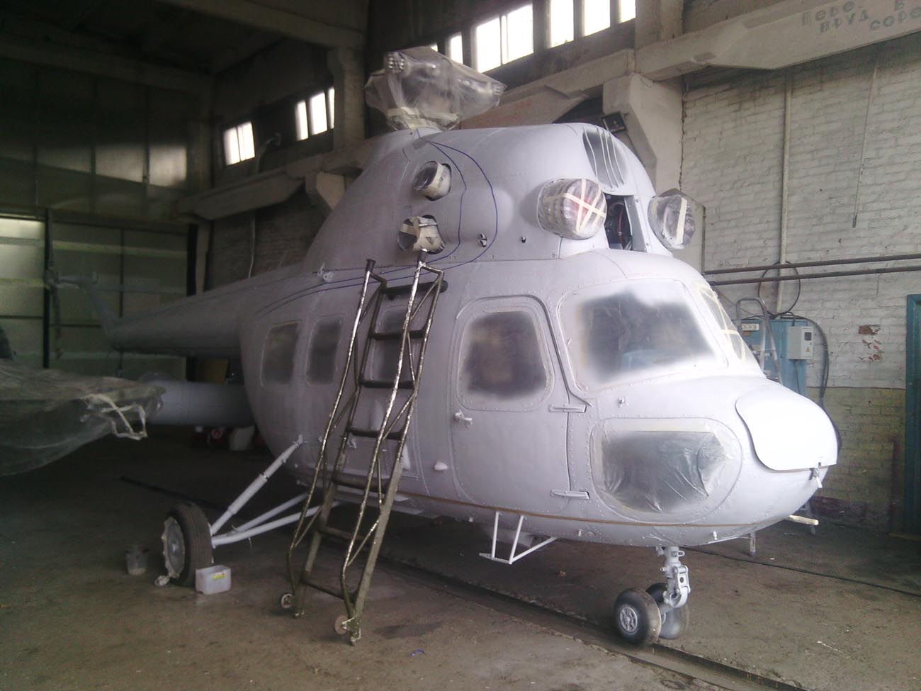 Начало, естественно перед покраской вертолёт был полностью очищен смывкой от старых слоёв красок.