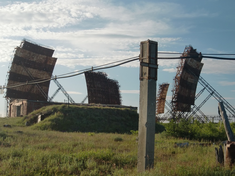 Ещё одно место, на которое я давно заглядывался, но не мог добраться - антенны станции дальней тропосферной радиорелейной связи, расположенные на сопке за городом. Когда-то это был весьма секретный объект. Монстрообразное сооружение.