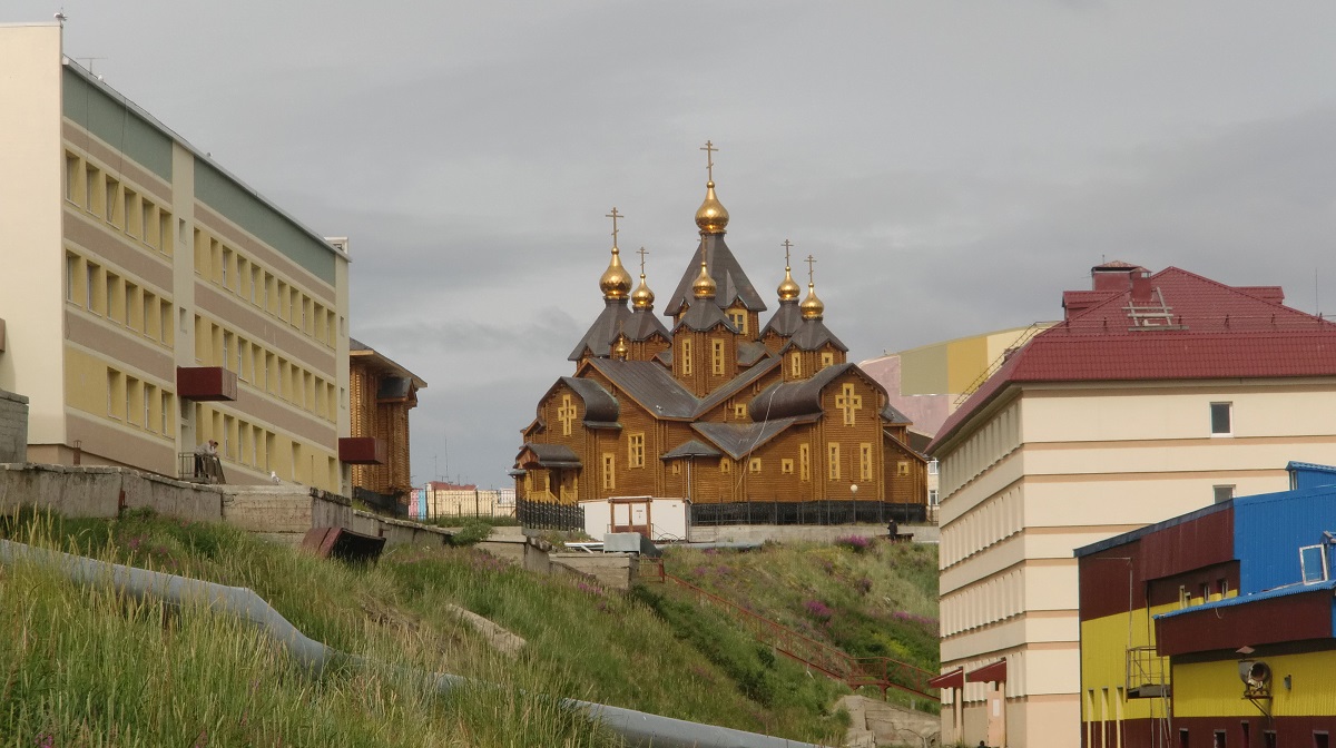 Все дома на вечной мерзлоте стоят на сваях. Т.е. под домом можно пройти насквозь. А сразу и не понять.