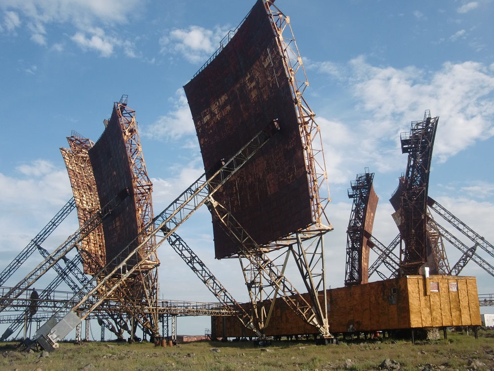 Ещё одно место, на которое я давно заглядывался, но не мог добраться - антенны станции дальней тропосферной радиорелейной связи, расположенные на сопке за городом. Когда-то это был весьма секретный объект. Монстрообразное сооружение.