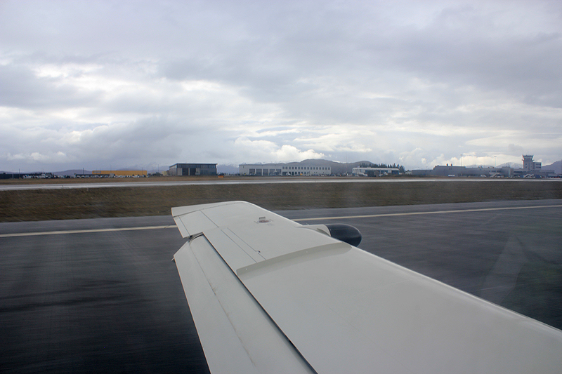 Еще через полчаса начали снижение. Заходили по ILS, полоса 25. Экипаж ощутимо напрягся: облака были неприятные, ледяные. Автоматический информатор ATIS давал температуру у земли +3С, рваный ветер и нижний край облачности 500 футов, при том, что это фьорды, пики гор достигают 3000 футов, и они в облаках. Мы, помятуя, как на Ацтеке ловили лед в +8С, внимательно следили за лобиками крыльев. Реальность оказалась намного приятнее ожиданий. Нас отвекторили, из облаков вынырнули где-то на 800 футах, льда налипло немного и он быстро стаял. А когда открылась земля, я аж подпрыгнула в кресле - я еще не видела гор из самолета так близко – почти за законцовкой крыла, только руку протяни!