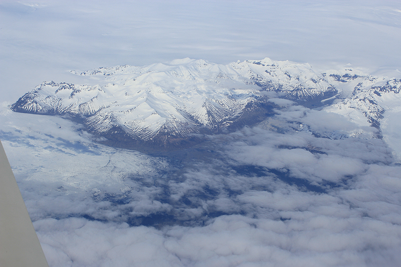 Дракоша встал на эшелон и взял курс на Норвегию, город Alesund, аэродром Vigra - ENAL. Мы большей частью молчали - каждый о своем. Часа через полтора внизу появились предгорья, а вместе с ними и плотный слой облаков. Земля исчезла. Пики гор - темно-серые монументы, украшенные ожерельями из снега - мы ловили их, тщательно прицеливаясь объективом в редкие разрывы облаков.