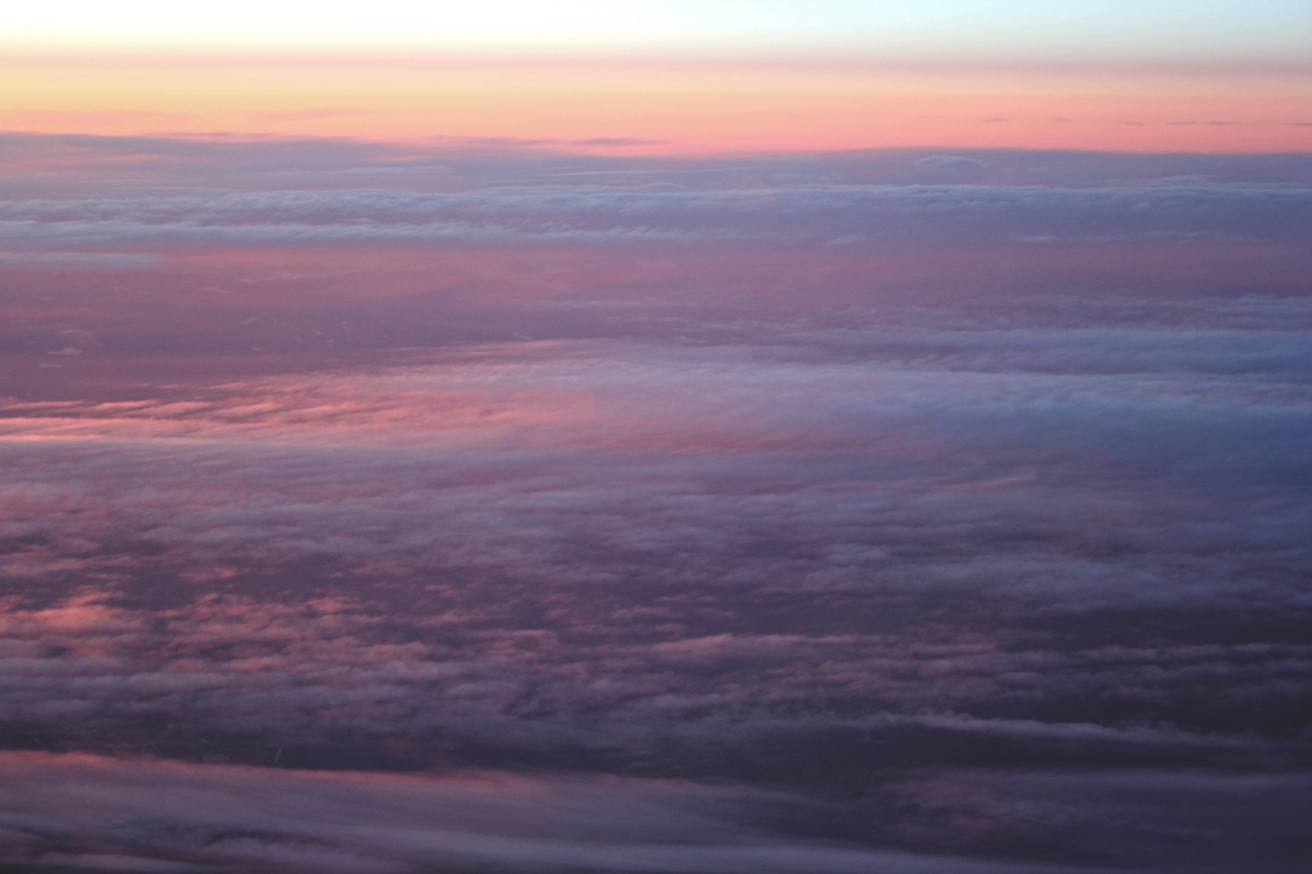 Через полчаса Гренландия закрылась плотным слоем облаков. Даже как-то скучновато. В первый момент всегда впечатляешься белой пушистой перине, а через некоторое время взгляд привыкает и начинает искать, за что бы ему зацепиться. Это как с едою – если два дня подряд кушать только пирожные, на третий день душа начинает просить сосиску с хреном. Кстати, сосиска была бы очень хороша, даже две, или три. Кофе от щедрот АДП давно усвоился организмом, котлетный бюджет мы освоили еще в начале полета и к середине пути утешались морковочками, припасенными еще в Таллине, с осознанием того, что обеда не предвидится. На второй трети пути облака открыли нам океан.