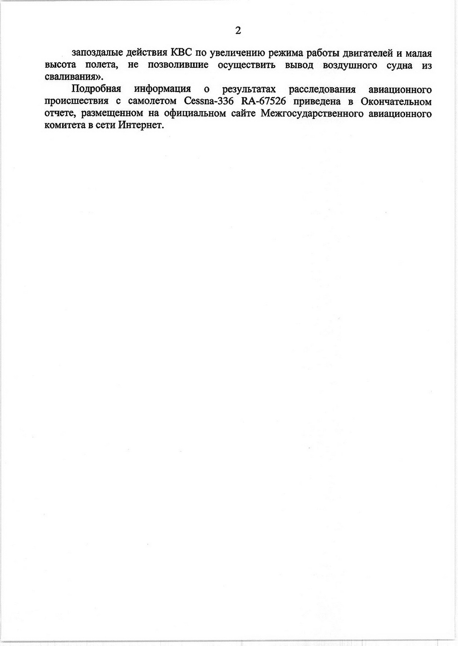 ПОСЛЕДУЮЩЕЕ ДОНЕСЕНИЕ ОБ АП С САМОЛЕТОМ CESSNA-336 RA-67526