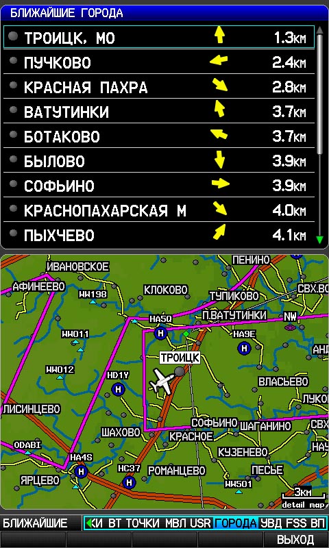 Babay писал(а):Страница ближайших объектов (NRST) → Ближайшие города (CITY), если не показывает, то в опциях установить радиус отображения ближайжих объектов по-больше.