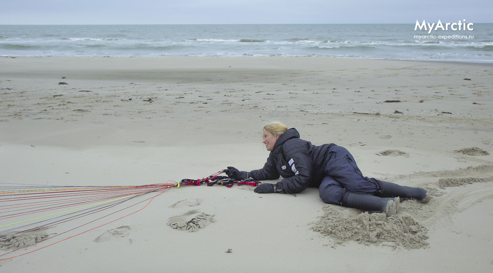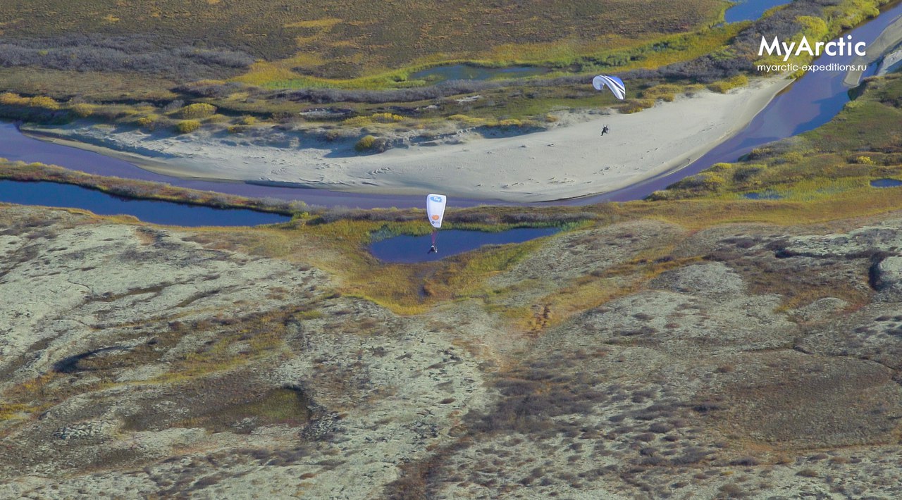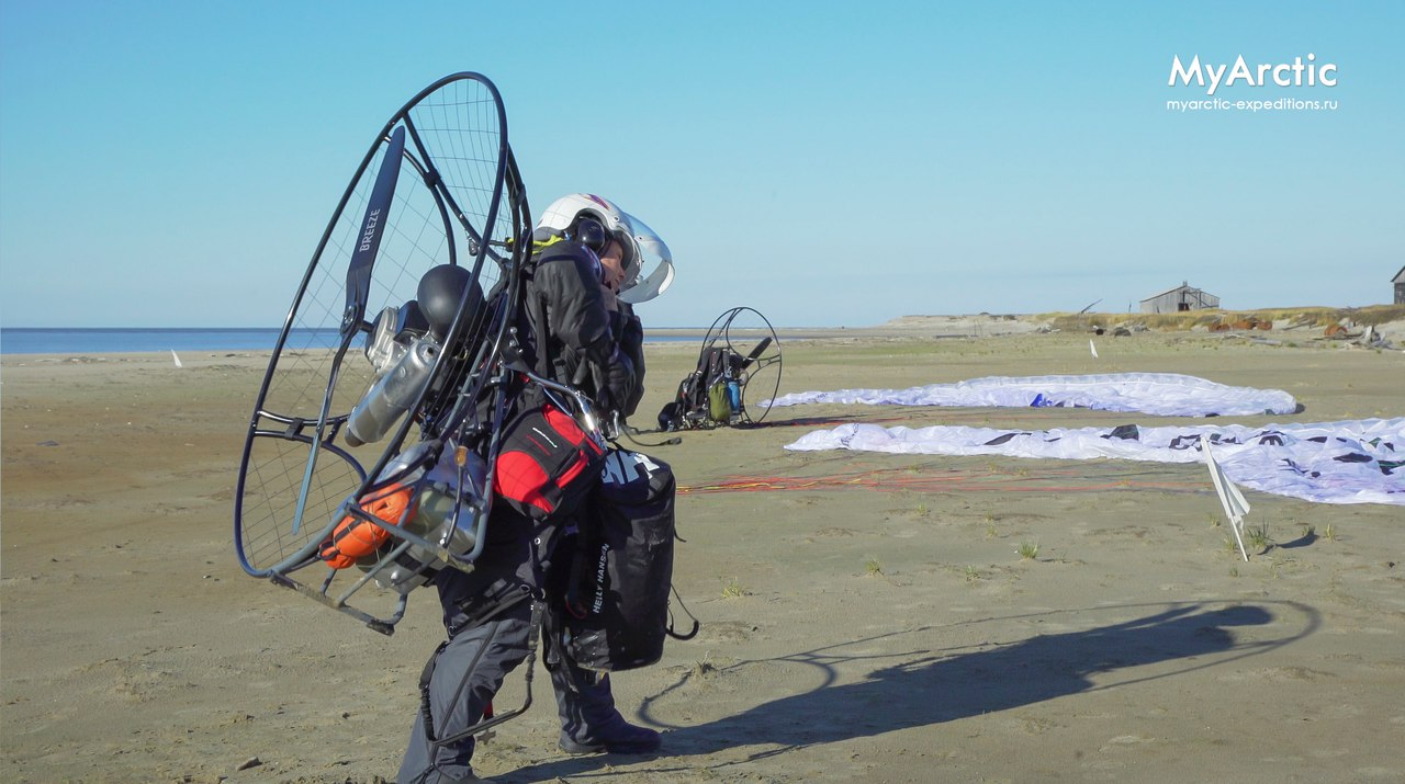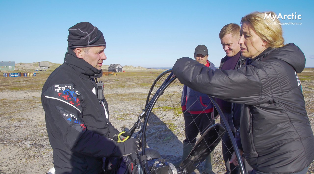 Русские не сдаются! И Саша тоже не сдалась, когда ее парамотор вышел из стоя на метеостанции "Сенгейский шар". После двух часов безуспешных попыток починить его, было принято решение доставить Сашу к месту ночевки у стойбища оленеводов на вертолете. Сашу такой исход событий в корне не устроил, и она быстренько "отжала"
