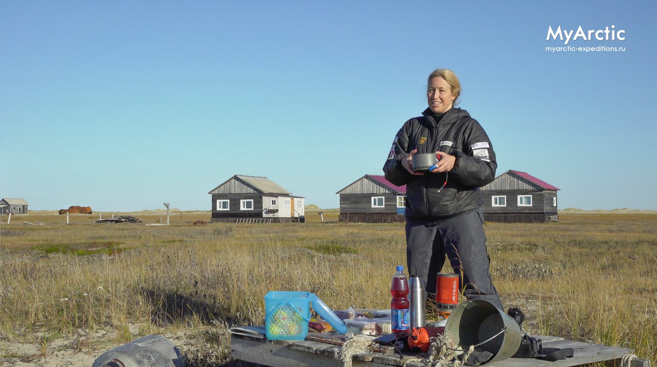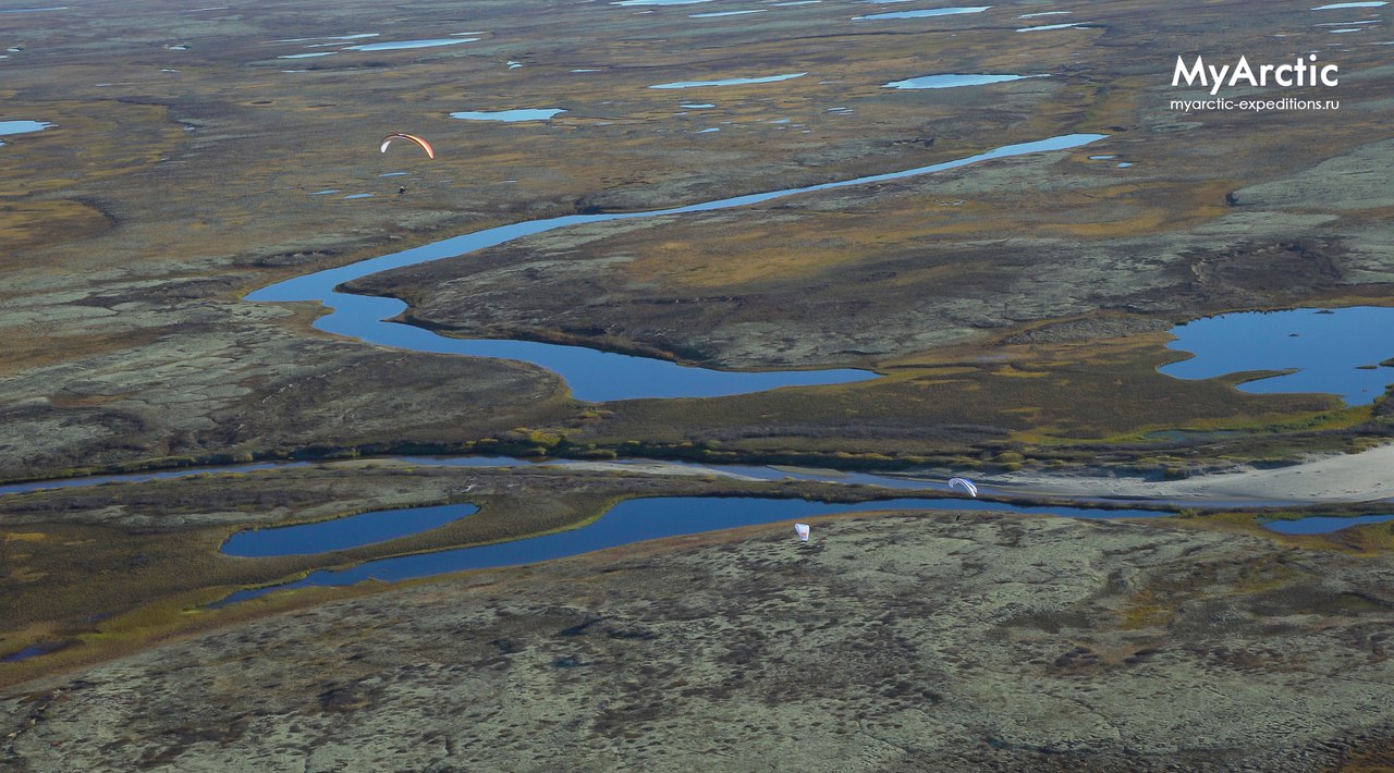 День 1. п.Кост-Нос - д.Табседа О таком подарке на свой день рожденья 19-го сентября Василий Тереньтьев, единственный житель деревни Табседа, вряд ли мечтал. Обычное утро наедине с собой. И может быть Василий даже и не вспомнил бы про свой праздник. А тут, как снег на голову, свалились на него аж целых три парапланериста и вертолет. Саша Денч и её команда стартовали 19 сентября с полуострова Кост-Нос заповедника "Ненецкий". И первая остановка была в деревне Табседа.