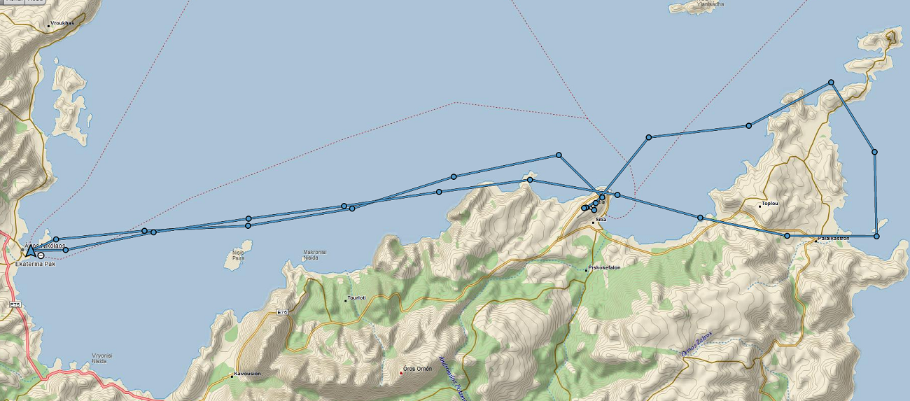 Сделав из принципиальных соображений небольшой кружок над восточной оконечностью Крита, мы вернулись в Ageos Nikolaos – конечно же, совсем затемно.