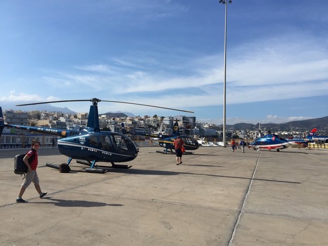 Пока я, как ответственная за базирование людей и бортов, металась между людьми и бортами с просьбами, остальные КВСы вели степенную беседу с немецким летчиком/вертолетчиком, который после окончания военной карьеры купил домик и поселился с семьей на Крите, а сейчас пришел с внучкой посмотреть и поностальгировать.