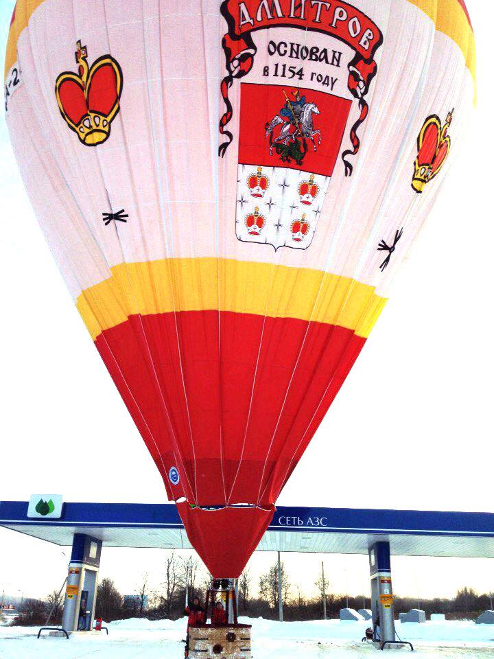 Наполнять шар сегодня мне досталось, перед чем Ваня осведомился, не пожгу ли я и этот шар. Этот не надо - он новый и с гербом города Дмитрова.