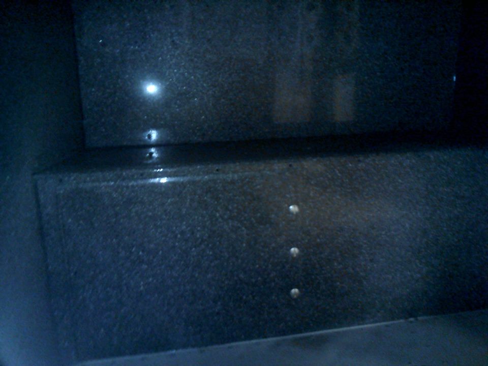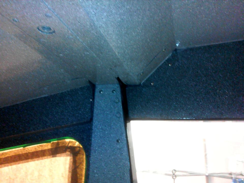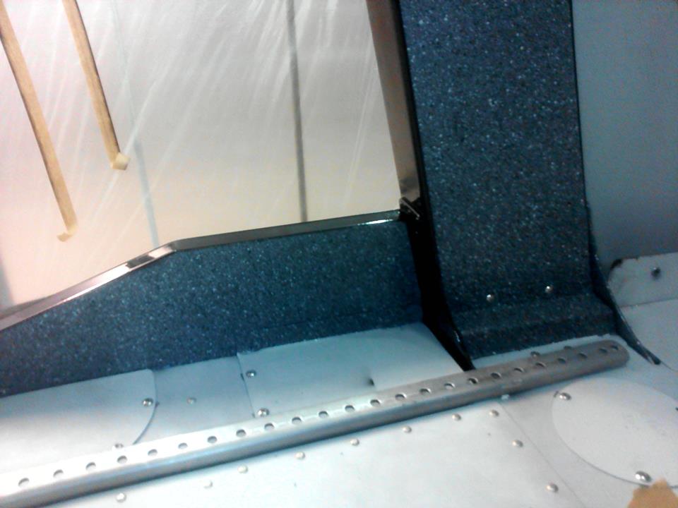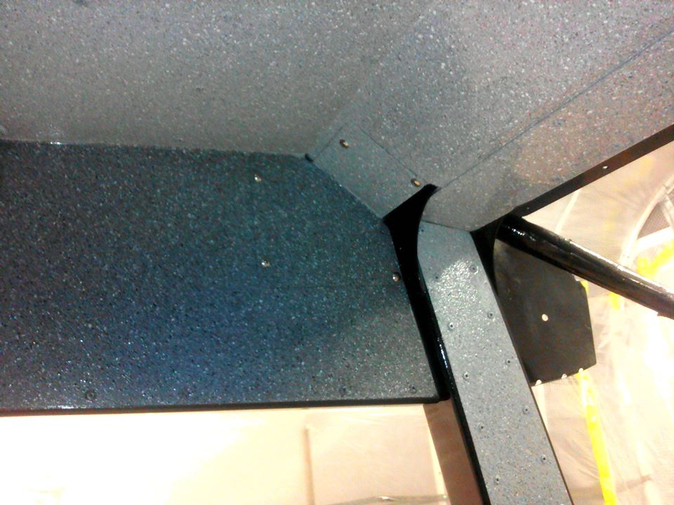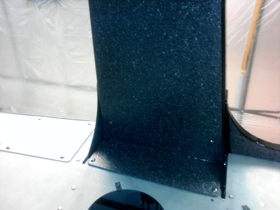 Начал красить с кокпита. Поскольку заказчик отказался от всяческого рода панелей и обшивок, а просто окрашенная кабина, на мой взгляд, выглядела-бы, эдак тракторно танковой по дизайну, со всеми заклепками и винтами внутри, выбрал такой вот метод набрызга. Получилось весьма монументально. Гранит, ёпта. Прям как в московском метро.