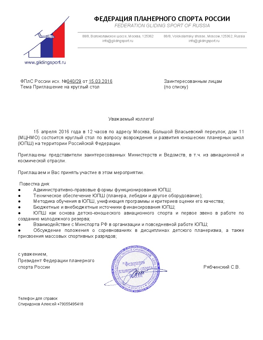 15 апреля в Москве состоится круглый стол по развитию ЮПШ. Федерация планерного спорта России приглашает всех заинтересованных лиц для участия.