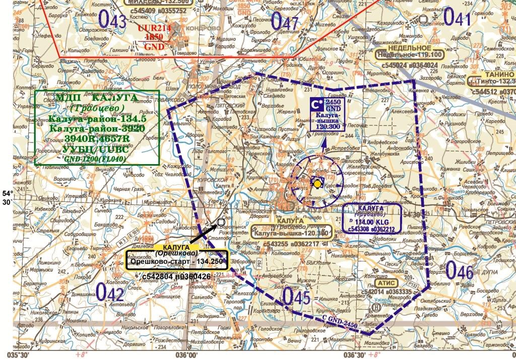 Подход 134.25 позывной "Калуга Орешково" (ПРИМЕЧЕНИЕ: при полетах обязателен доклад Калуга-Район 134,500)