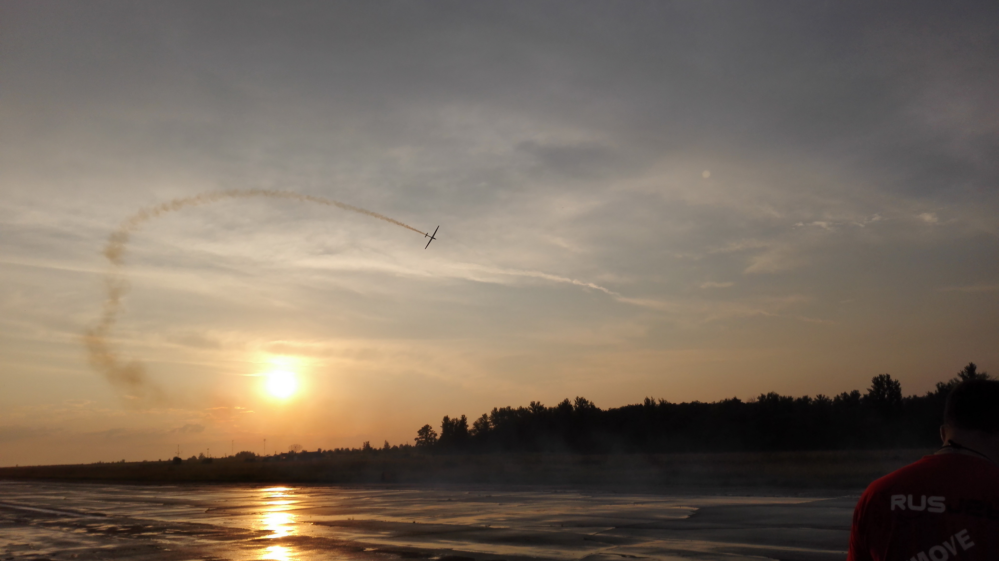 Полёты продолжаются и я должен выпускать на сцену следующих участников. Краем глаза слежу за пацаном, он в надежных руках, среди техников и пилотов, готовящих модели к показу в воздухе. Мальчишка освоился и деловито расхаживает на площадке подготовки к показу. Я вместе со зрителями увлекся выступлением великолепной пары - Павла Белова с его танцующей "Экстрой" и живой скрипкой прекрасной артистки "Вива-скрипка".