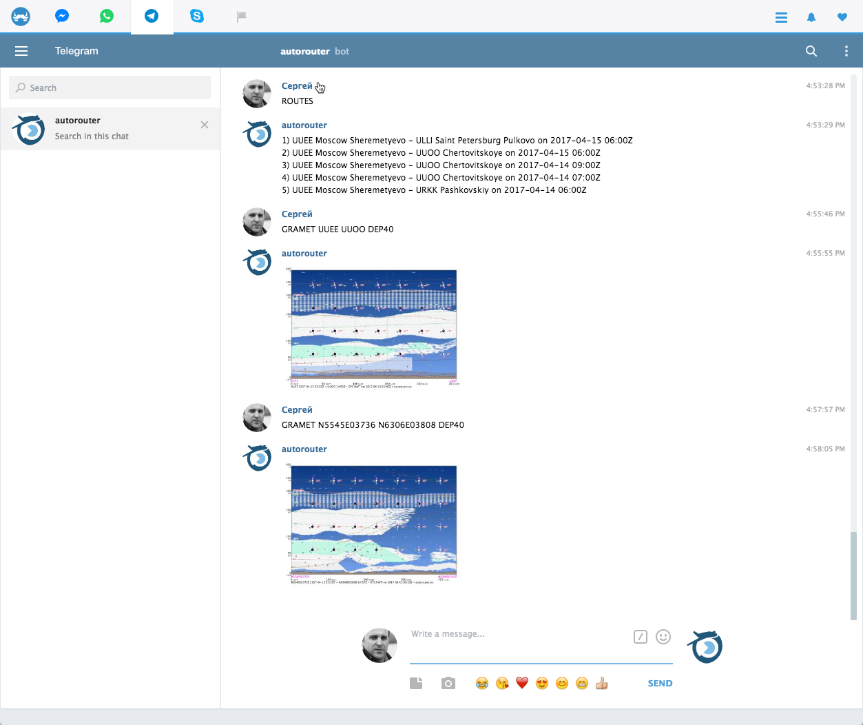 Например: получение актуальных метеорологических карт и информации по аэродромам. И все это одной командой в Телеграме: