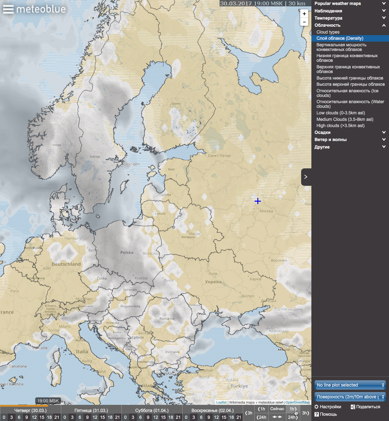 Нашел еще один ресурс для получения детализированных прогнозов погоды, пригодный для использовании в авиации - MeteoBlue: https://www.meteoblue.com/ru/weather-maps/ По большому счету, всё то же самое, что и на остальных, но есть нюансы и некоторые удобства, которых нет у других. Например - удобные аэрограммы и метеограммы, наподобие Ogimet.com, но немного нагляднее. Очевидно, по этой причине MeteoBlue хотят за эти небольшие удобства денег, но для начала можно воспользоваться 14-дневным триалом.