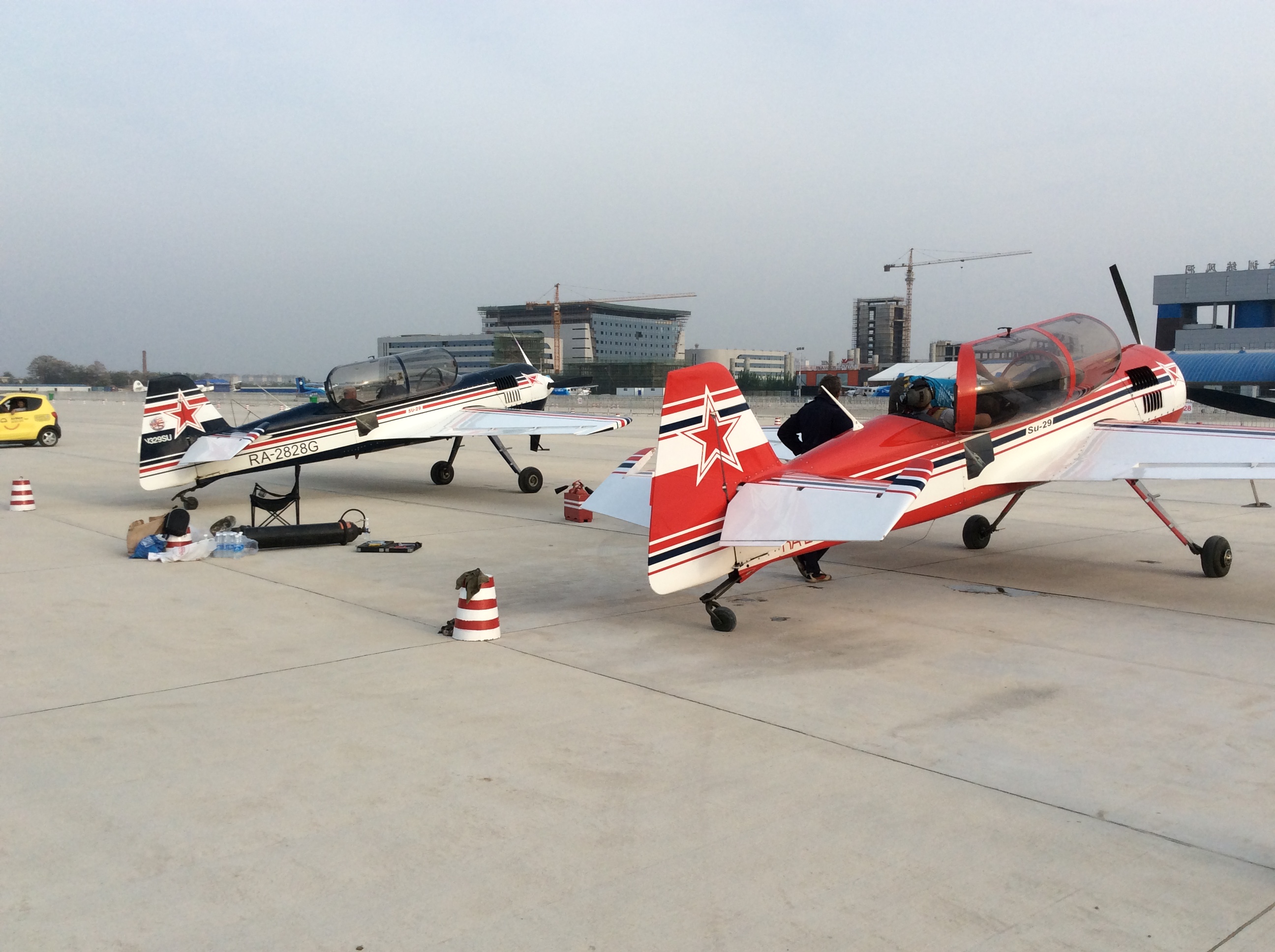 На сборку самолетов ушло 2 дня, наша команда уже совершила несколько тренировочный полет. Условия непростые, температура за 30 и очень высокая влажность.