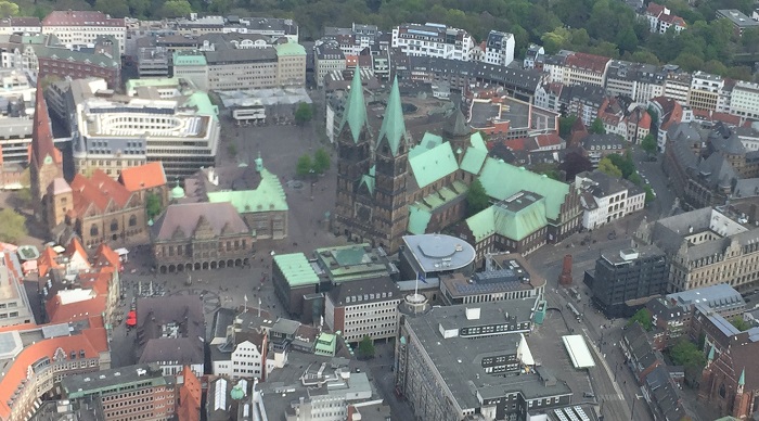 И вот он, Бремен! Ах, как прекрасна сверху его центральная площадь! Исторический квартал я не особо рассмотрела, но расстраиваться смысла не было, т.к. Сергей обещал подробненько изучить его пешим способом.
