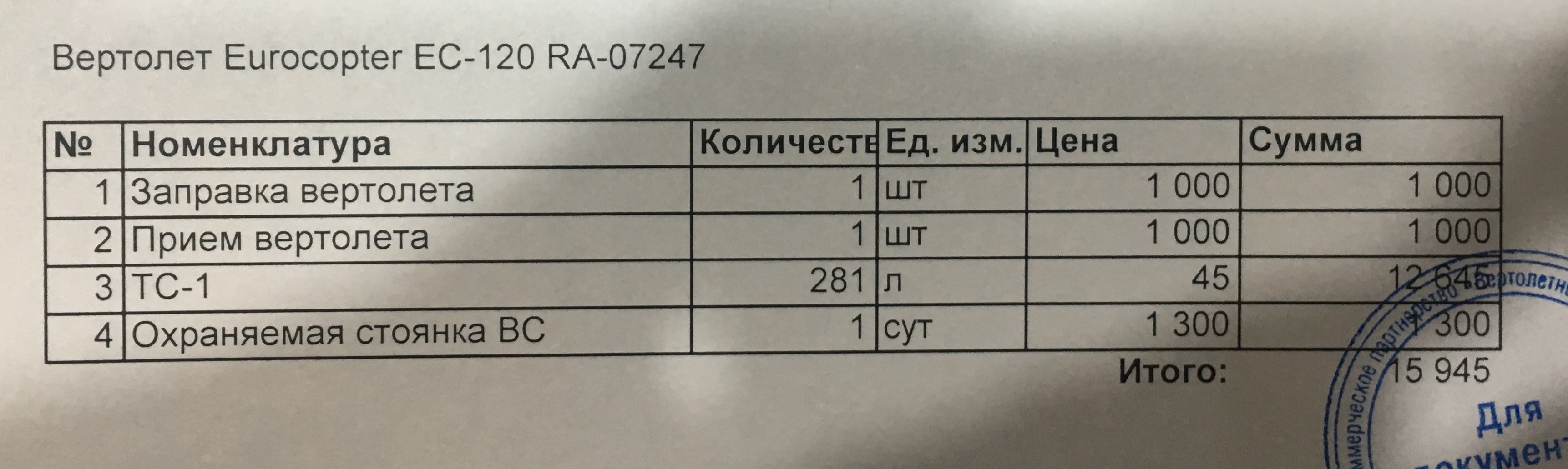 Можно оставить вертолет под охраной. Цена за сутки - 1300 руб (2017 год)