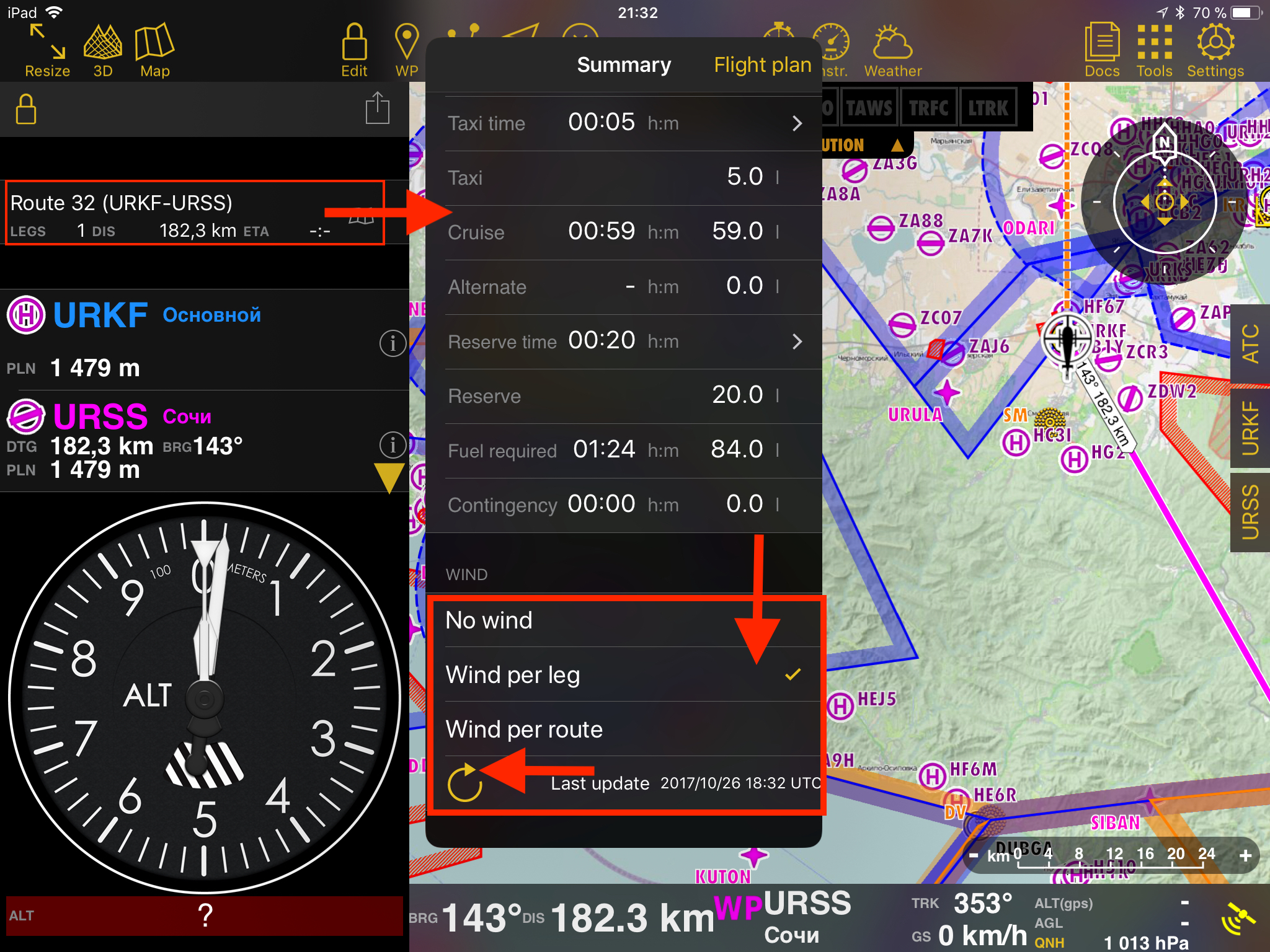 2. Wind per leg - Учет ветра на каждом участке полета отдельно;