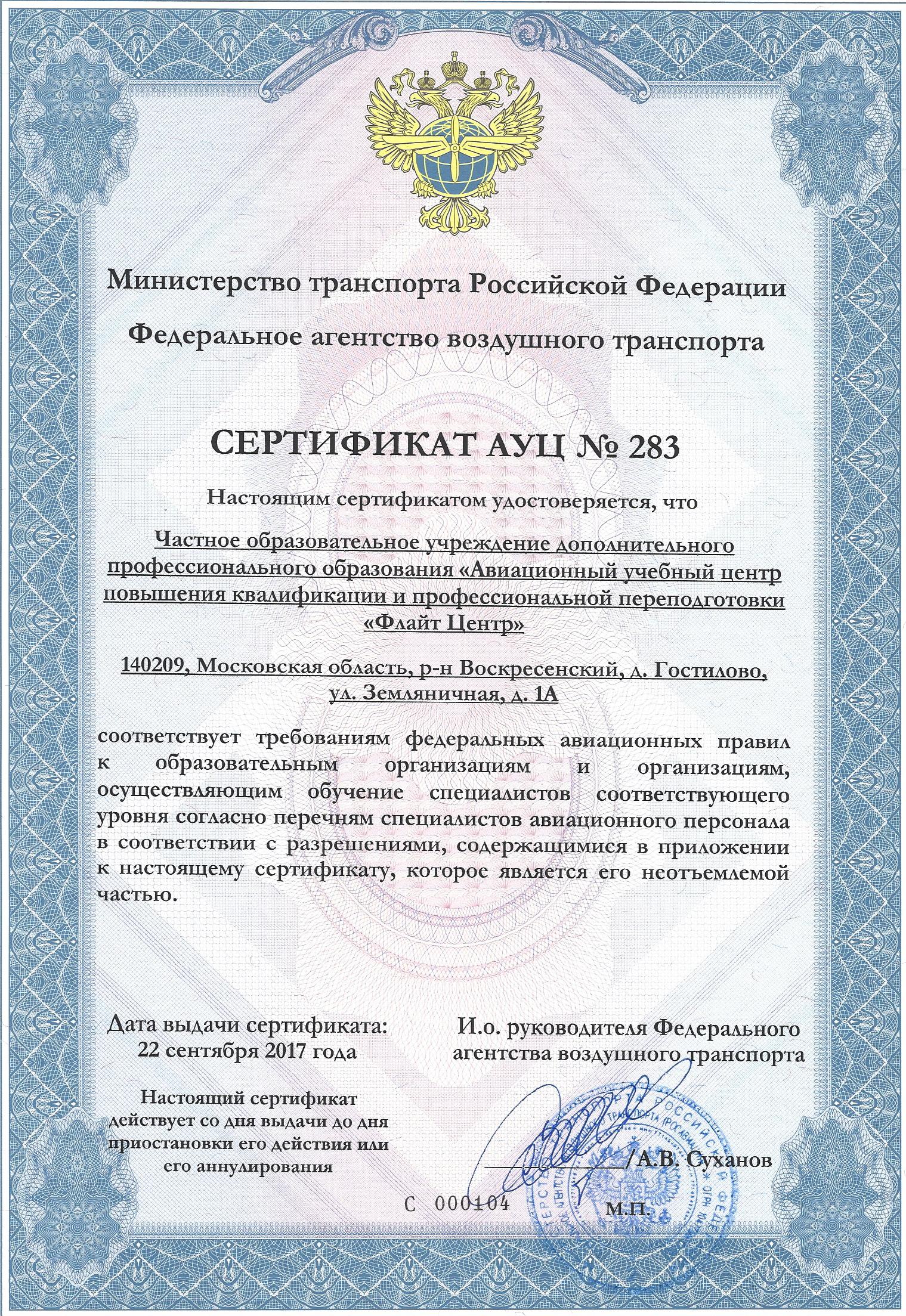 АУЦ "Флайт-Центр" получил сертификат АУЦ по СВС
