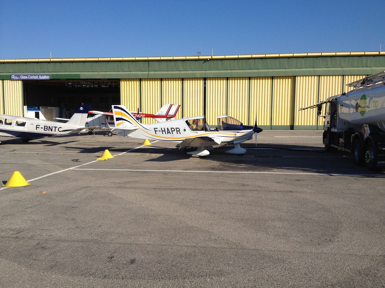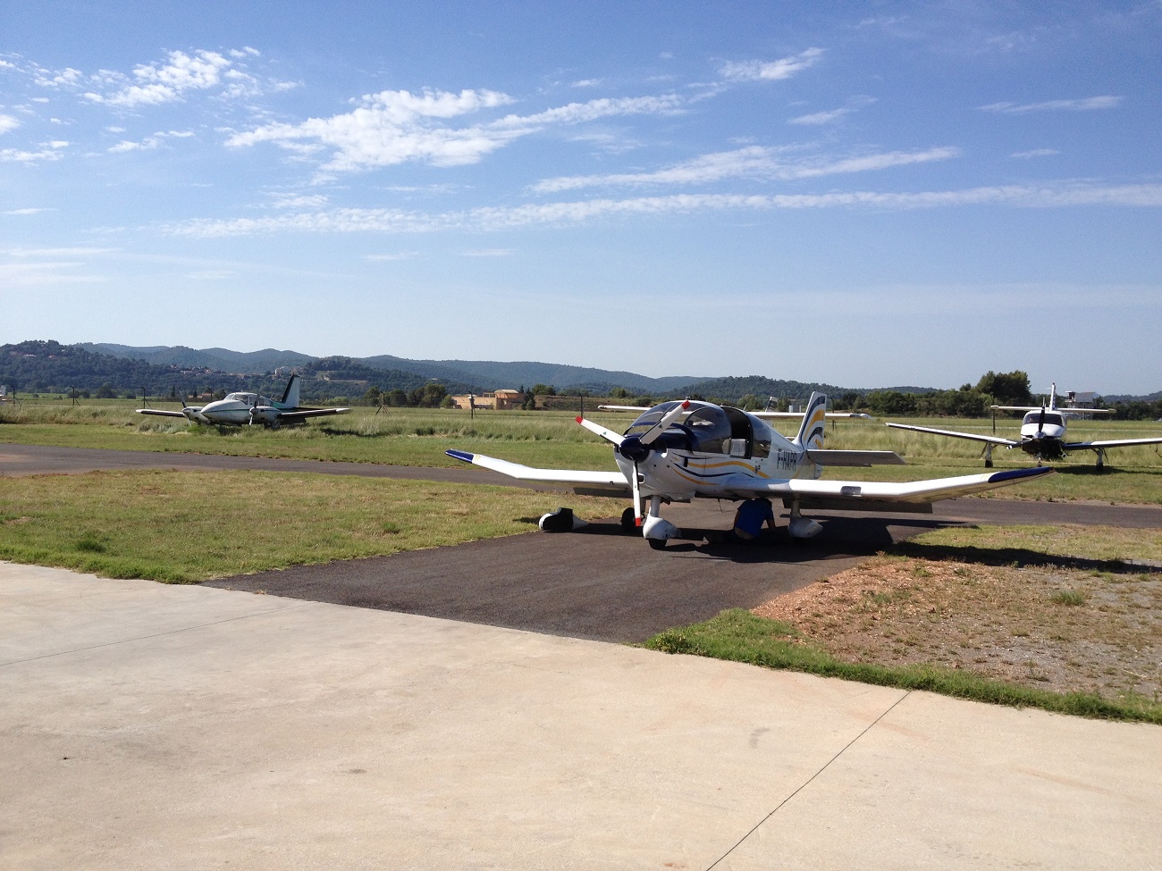 правда в правом кресле :wink: , перегоняли наш школьный самолет ДР-400, на тех.обслуживание 50ч. на аэродром в городке Cuers.