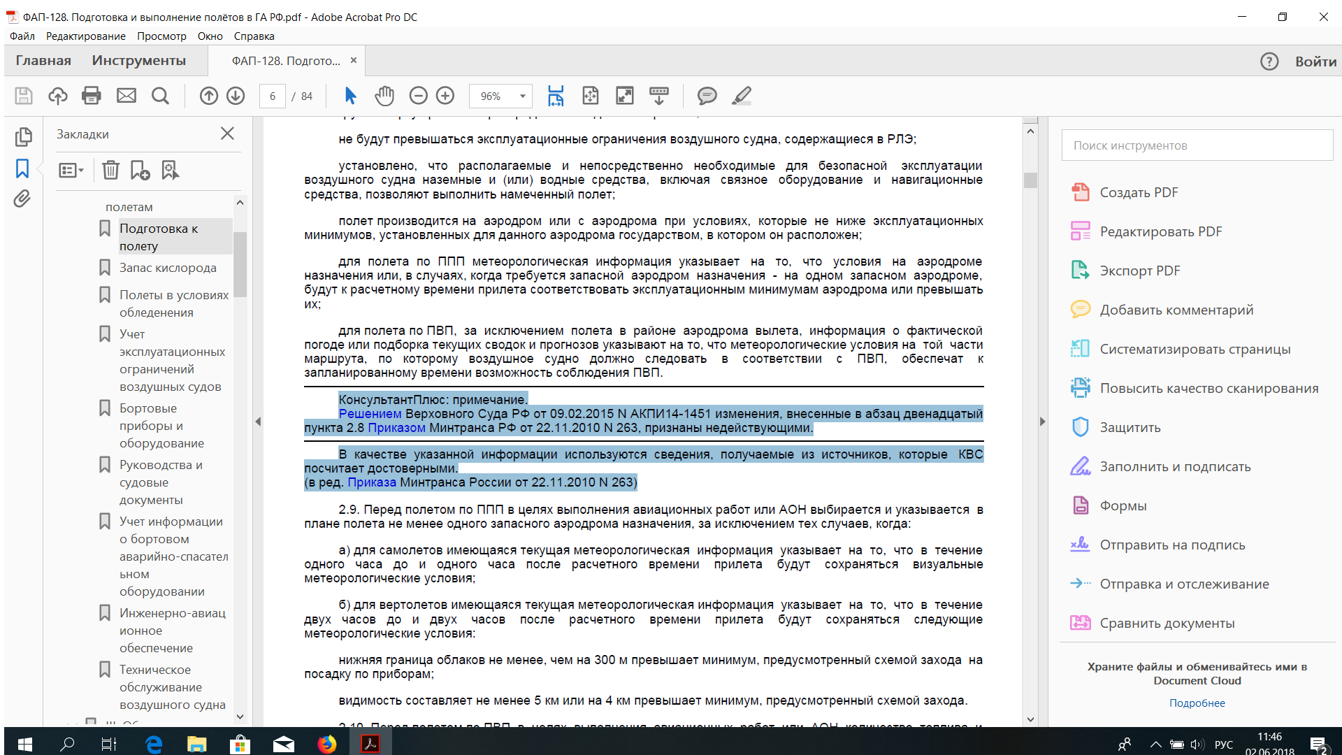 Решением Верховного суда РФ от 09.02.2015 г. № АКПИ14-1451 изменения, внесённые в этот абзац приказом № 263, признаны недействующими. Стало быть, пункт 2.8 ФАП-128 (приказа Минтранса РФ от 31 июля 2009 г. № 128 "Об утверждении Федеральных авиационных правил "Подготовка и выполнение полетов в гражданской авиации Российской Федерации") должен применяться в редакции ФАП-128, действовавшей до вступления в силу приказа Минтранса РФ от 22 ноября 2010 г. № 263, а именно:
