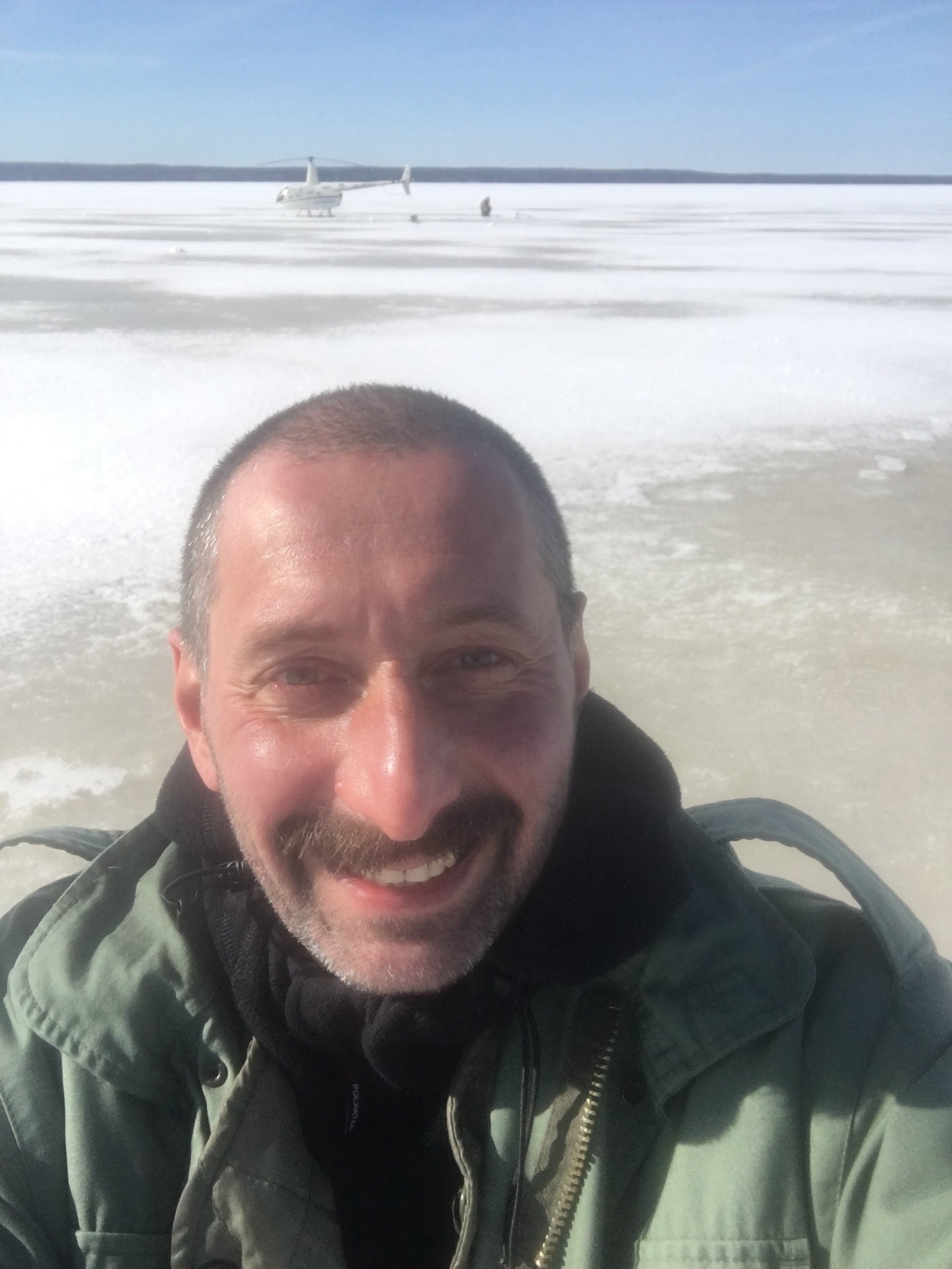 Рыбы мы так и не наловили. Всего десяток тощих длинных окуней темного цвета. Я очень старался бегая по льду с коловоротом в поисках щуки. Но нет. :( Наверное щуки уже знают звук вертолёта и заранее прячутся услышав его. :) Ну хоть дырки во льду остались для воздуха.