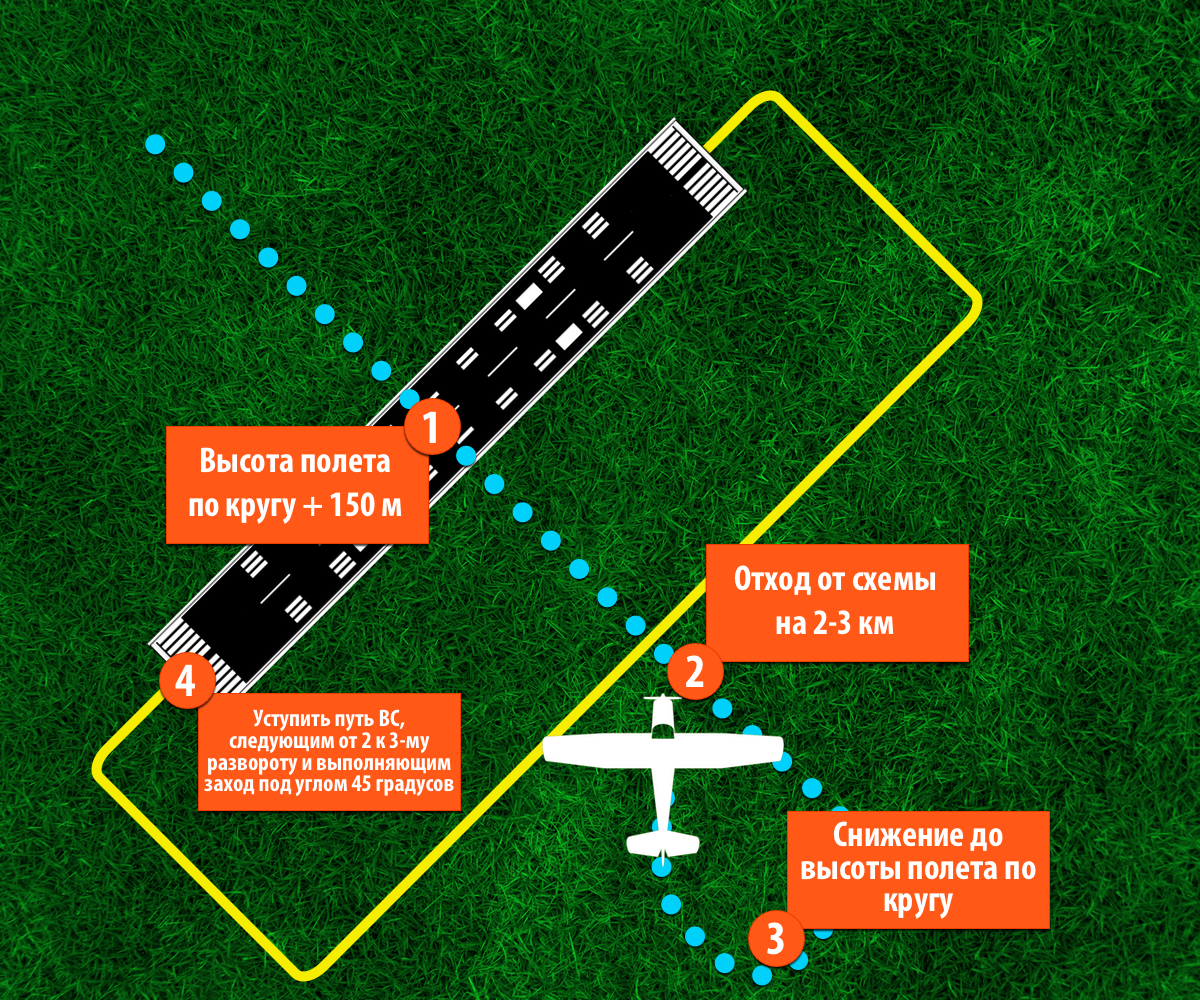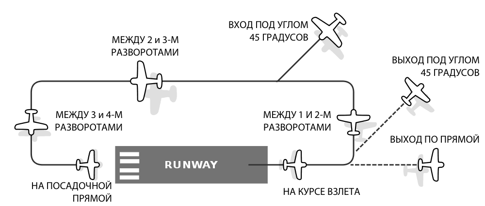 Схема захода на посадку под углом 45 градусов: