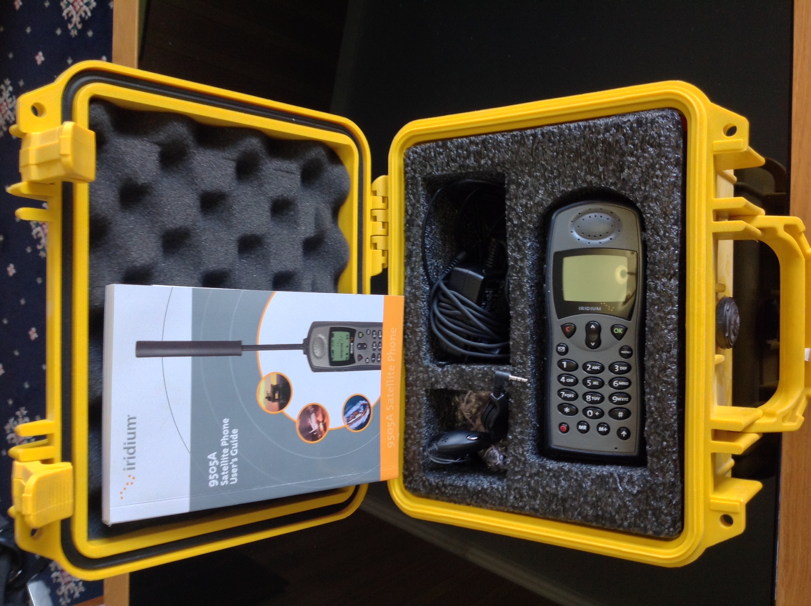 Спутниковый телефон Иридиум 9505А , не использовался, запасная батарея, выносная антена, переходники для зарядника, наушник, чехол, зарядка к "прикуривателю", герметичный кейс Pelican 1300. Все в состоянии -"новое". Во Владимире.