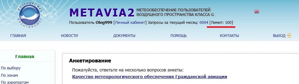 Миш, а ты разве не в курсе, что когда происходит АП, то инспектор сразу направляет запрос в ФГБУ "Авиаметтелеком Росгидромета", с целью уточнить, зарегистрирован-ли на сайте и получал-ли пилот метеоконсультацию? Если да, то в каком объеме? Нажми на счетчик своих запросов в шапке страницы metavia2 и узнаешь, какую информацию получает инспектор, если ты там что-то брал. Вот эту информацию он и будет использовать в отчете. Так что простое заявление "Я беру оф.инфу на этом сайте" надо еще подкрепить будет соответствующими запросами.