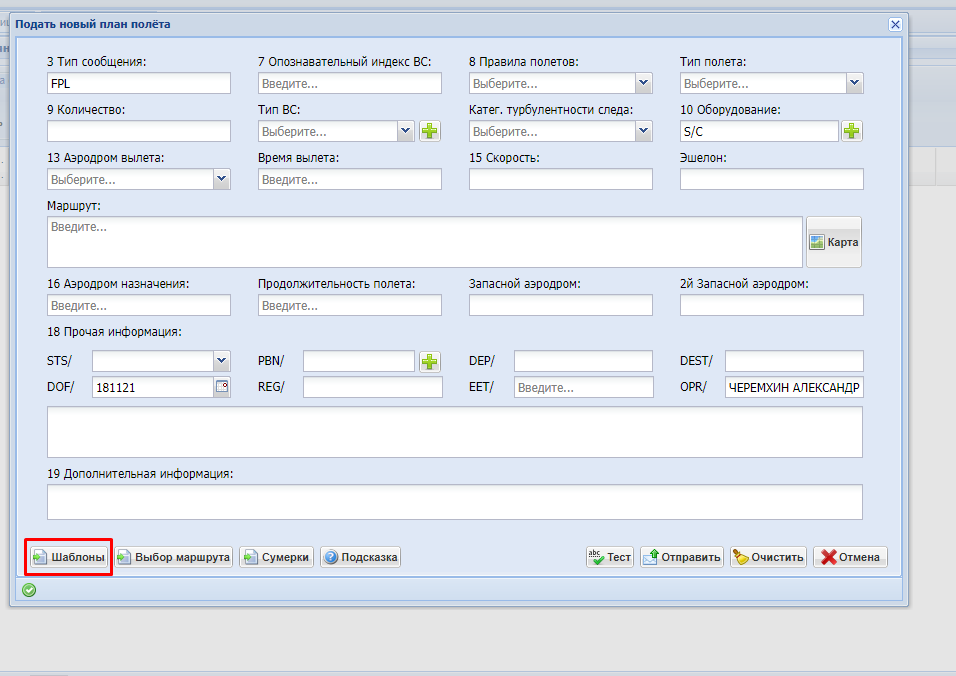 В фплн появилась пересылка планов на сервера РосАвиации как шаблонов.