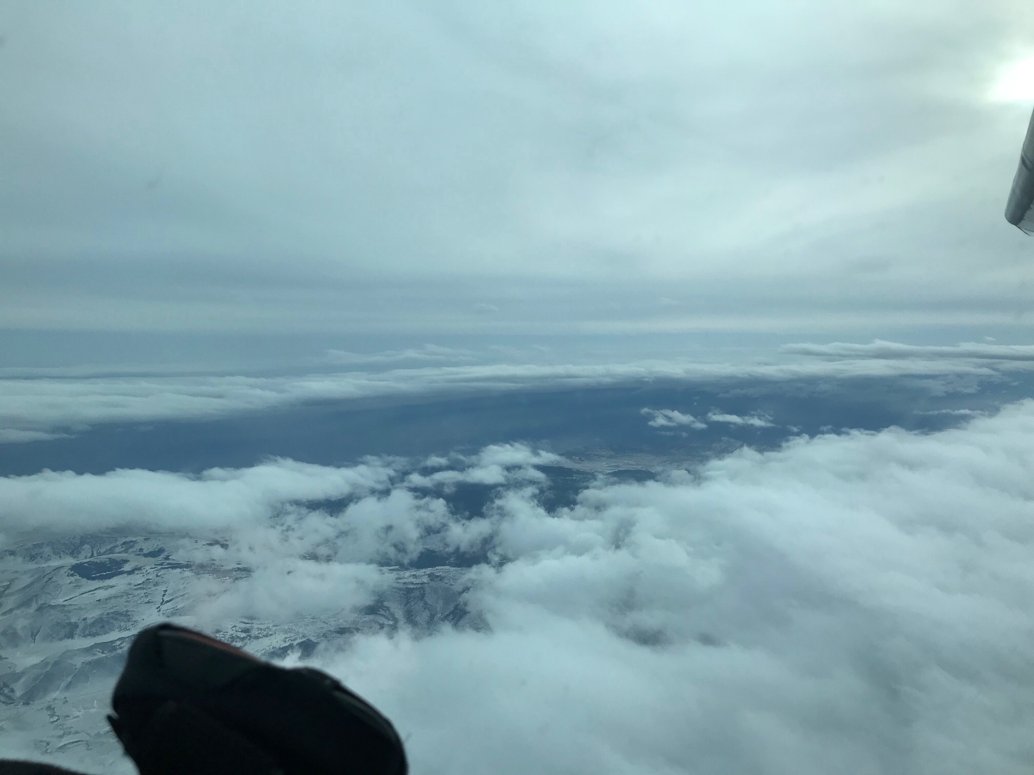 И вот мы сидим в самолете в гидрокостюмах. За бортом -30. Взлёт. Набор высоты на 130 эшелон прошли облака. Материк закончился. Расстояние до сахалина 114 км. Сидим не дышим. Самолёт летит, автопилот работает. Вот уже сахалин прошли и впереди 900 км бескрайней воды. На самом деле ее не было видно только местами просвечивали облака. И на навигаторе синий экран.