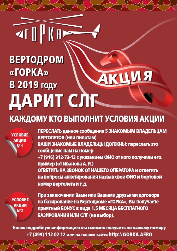 Вертодром «ГОРКА» приглашает на базирование!